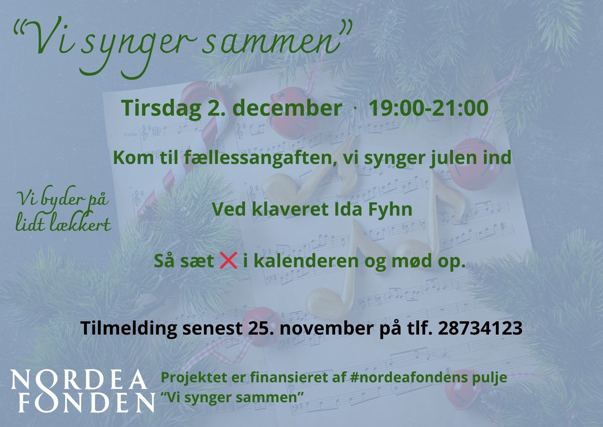 Tilmelding senest 25. november på tlf. 28734123